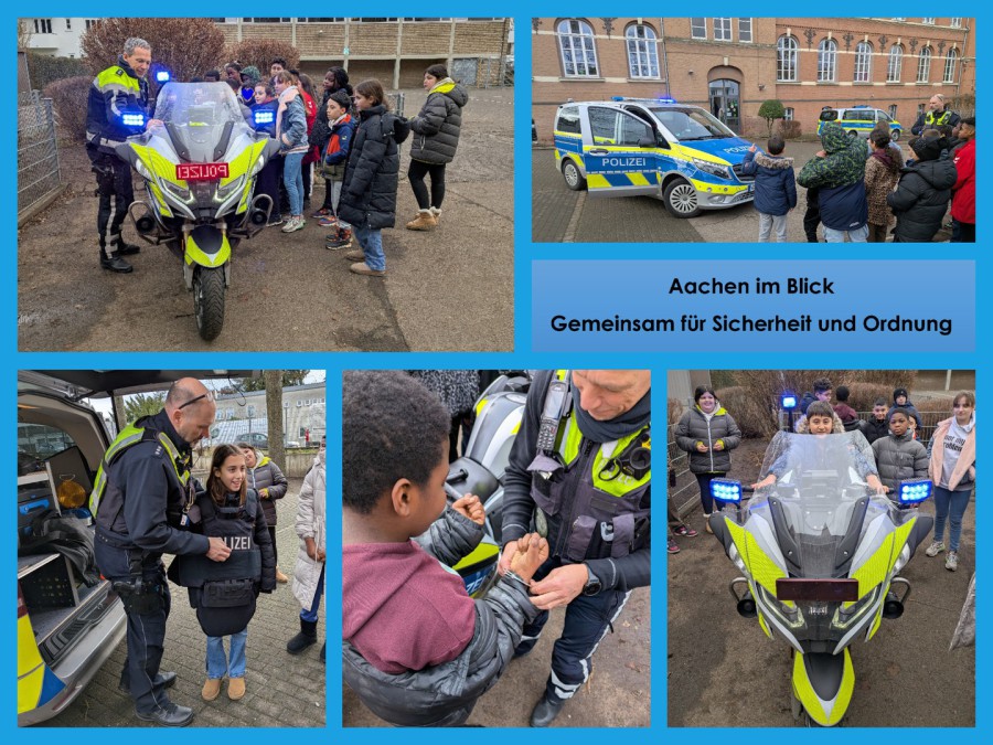 Die Kinder der Klasse 4 behandelten im Unterricht das Thema „Berufe“. Dazu kamen vier Polizisten in unsere Schule. Sie brachten zwei Polizei-Autos und ein Polizei-Motorrad mit. Die Kinder durften sich alles genau anschauen und sogar auf dem Motorrad sitzen. Besonders cool war das Martinshorn. Das war sehr laut! Die Polizisten erklärten ihre Arbeit und ihre Ausrüstung. Sie beantworteten viele neugierige Fragen. Alle waren begeistert und haben viel über den Beruf des Polizisten gelernt.