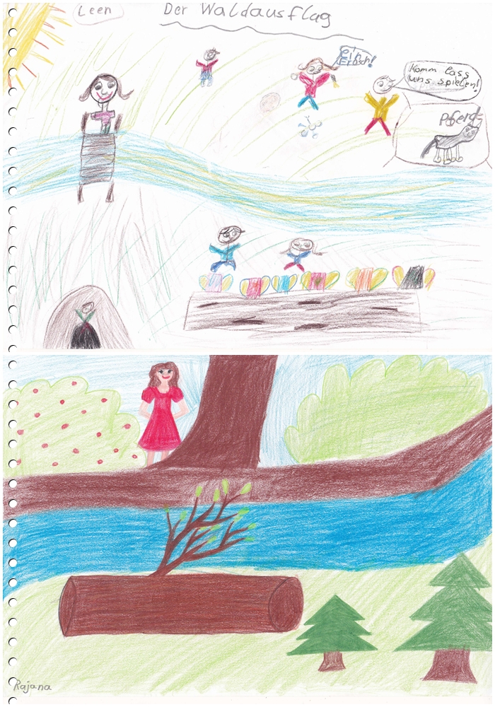 Dann hat unsere Lehrerin einen Witz gemacht und gesagt, dass alle, die in den Bach gefallen sind, nicht mit dem Bus, sondern zu Fuß nach Hause müssen. Und alle haben das geglaubt.